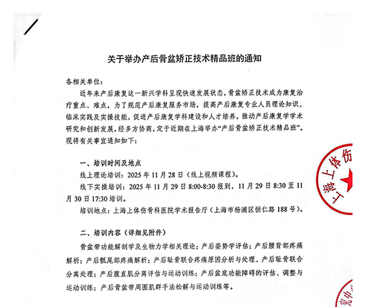 近年來產后康復這一新興學科呈現快速發展狀態,骨盆矯正技術成為康復治療重點、難點,為了規范產后康復服務市場,提高產后康復專業人員理論知識、臨床實踐及...